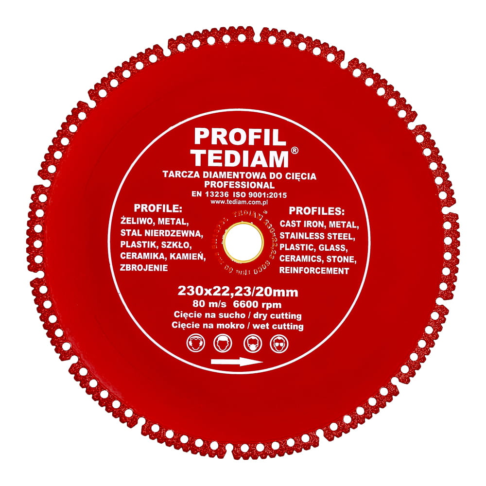 TARCZA DIAMENTOWA DO CIĘCIA PROFILI RUR 230x22,23 metalu szkła uniwersalna