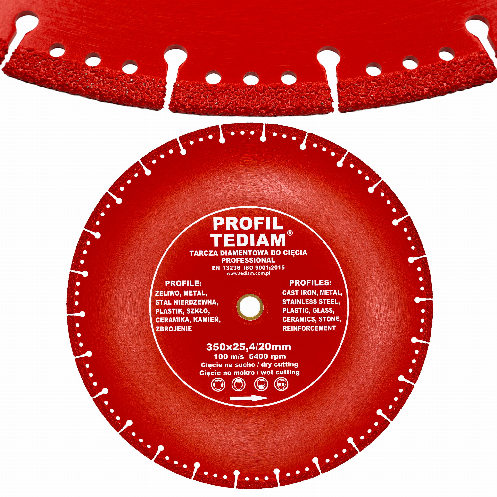 TARCZA DIAMENTOWA DO CIĘCIA PROFILI rur 350x25,4 mm wielozadaniowa 100 m/s