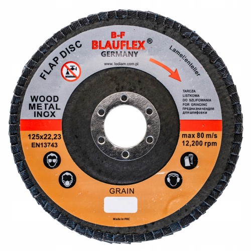Ściernice lamelkowe marki BLAUFLEX® Germany design do szlifierek ręcznych cechuje wysoka jakość wykonania listków z materiału ściernego oraz trwałość. Tarcze Blaufluex typu listkowego bardzo dobrze sprawdzą się w pracy z takimi materiałami jak metale, drewno czy stal nierdzewna(inox). Dostępność tarcz w kilku stopniach granulacji (40 – gruboziarnista, 60 – średnioziarnista, 80 – drobnoziarnista) umożliwia zastosowanie ich na każdym etapie obróbki.