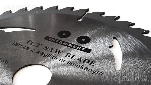 Tarcza do drewna z widią marki INTER KERT jest przeznaczona do prac stolarskich i ciesielskich, wymagających precyzji oraz szybkości w cięciu. Piła widiowa posiada specjalne rowki kompensacyjne, które chłodzą tarczę i tym samym zapobiegają odkształceniom i podnoszą jej trwałość oraz wydajność. Wykonana z doskonałej, laserowo wykrawanej stali. Tarcza widiowa INTER KERT ma solidne, hartowane i na przemian skośne zęby, które zakończone są węglikiem wolframu TCT (tungsten carbide tipped), które gwarantują szybkie i precyzyjne cięcia. Węglik spiekany umożliwia wielokrotne ostrzenie.