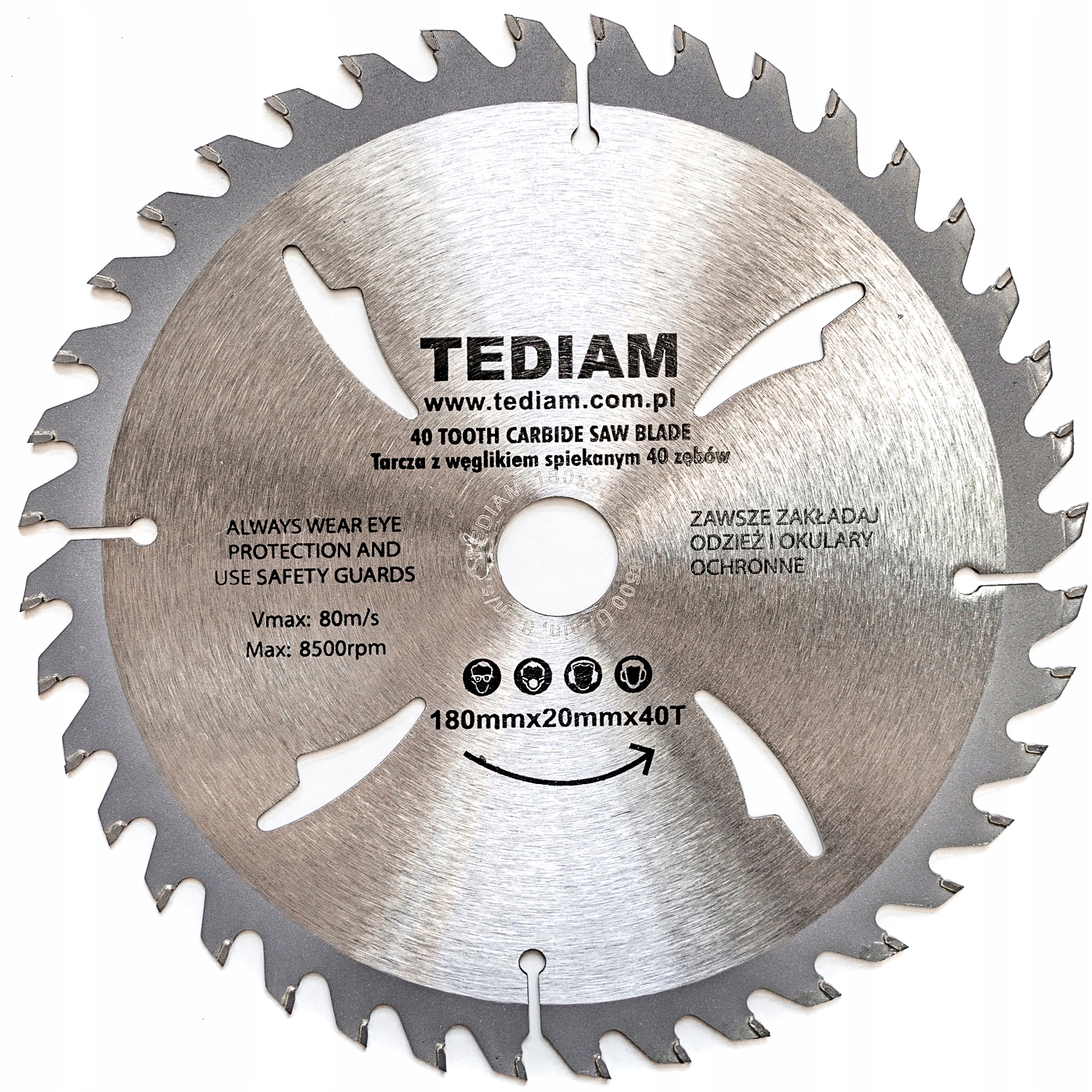 Tarcza posiada wzmocniony korpus i ostrza zakończone bardzo wysokiej jakości widią. Bardzo solidne, hartowane zęby, które zakończone są grubą warstwą bardzo wysokiej jakości węglikiem wolframu TCT (tungsten carbide tipped), co umożliwia wielokrotne ostrzenie!