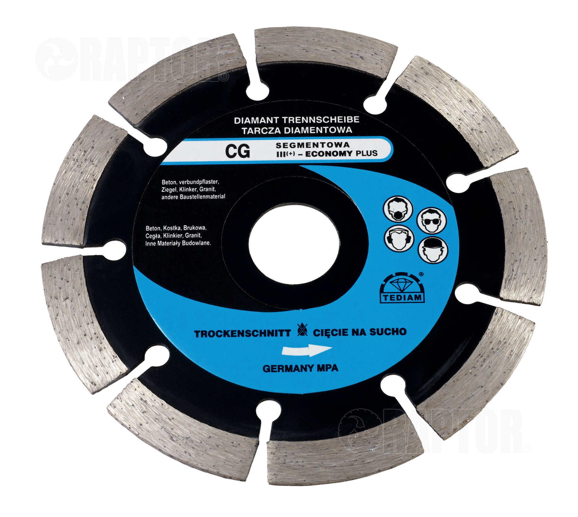 Tarcza diamentowa z wieńcem segmentowym renomowanej marki TEDIAM model CG to produkt wykonany w nowej technologii produkcji, przeznaczony do wysokiej jakości cięcia betonu, kostki brukowej, gazobetonu, granitu, marmuru, cegły, płyt cementowych, klinkieru, dachówki, betonu komórkowego i innych.
