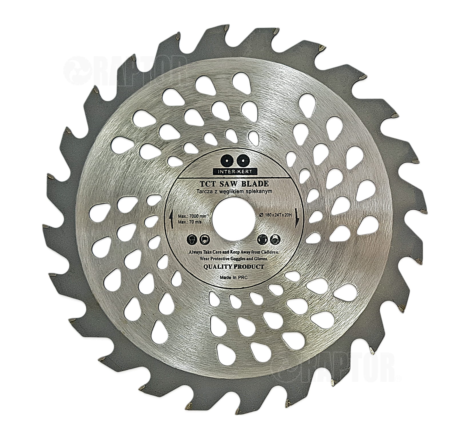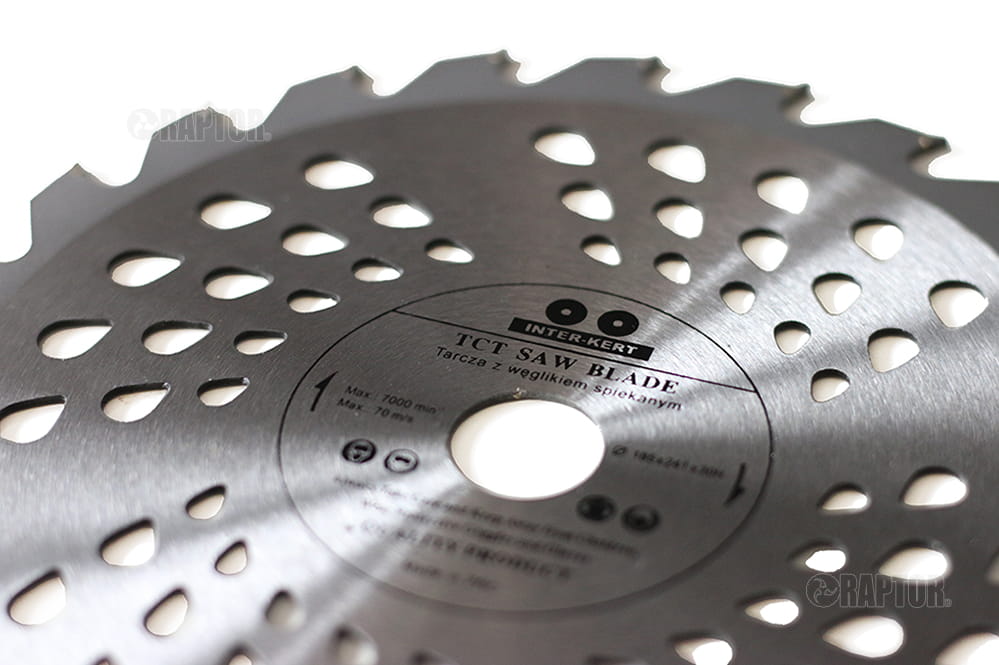 Tarcza do drewna z widią marki INTER KERT jest przeznaczona do prac stolarskich i ciesielskich, wymagających precyzji oraz szybkości w cięciu. Piła widiowa posiada specjalne rowki kompensacyjne, które chłodzą tarczę i tym samym zapobiegają odkształceniom i podnoszą jej trwałość oraz wydajność. Wykonana z doskonałej, laserowo wykrawanej stali. Tarcza widiowa INTER KERT ma solidne, hartowane i na przemian skośne zęby, które zakończone są węglikiem wolframu TCT (tungsten carbide tipped), które gwarantują szybkie i precyzyjne cięcia. Węglik spiekany umożliwia wielokrotne ostrzenie.