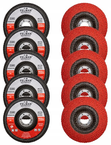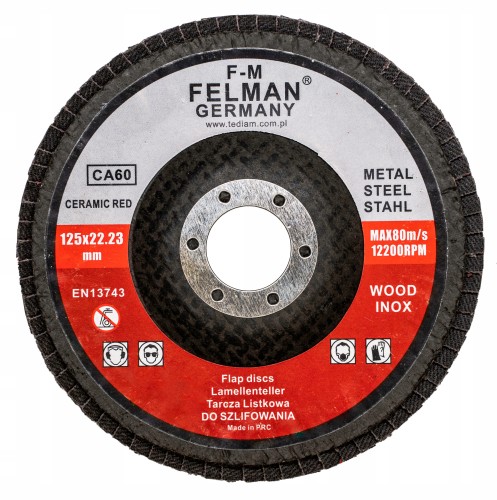 Ściernice lamelkowe marki FELMAN® Germany CERAMIC RED do szlifierek ręcznych cechuje wysoka jakość wykonania listków z materiału ściernego oraz trwałość. Tarcze FELMAN typu listkowego bardzo dobrze sprawdzą się w pracy z takimi materiałami jak metale, drewno czy stal nierdzewna (inox). Dostępność tarcz w kilku stopniach granulacji (40 – gruboziarnista, 60 – średnioziarnista, 80 – drobnoziarnista) umożliwia zastosowanie ich na każdym etapie obróbki.