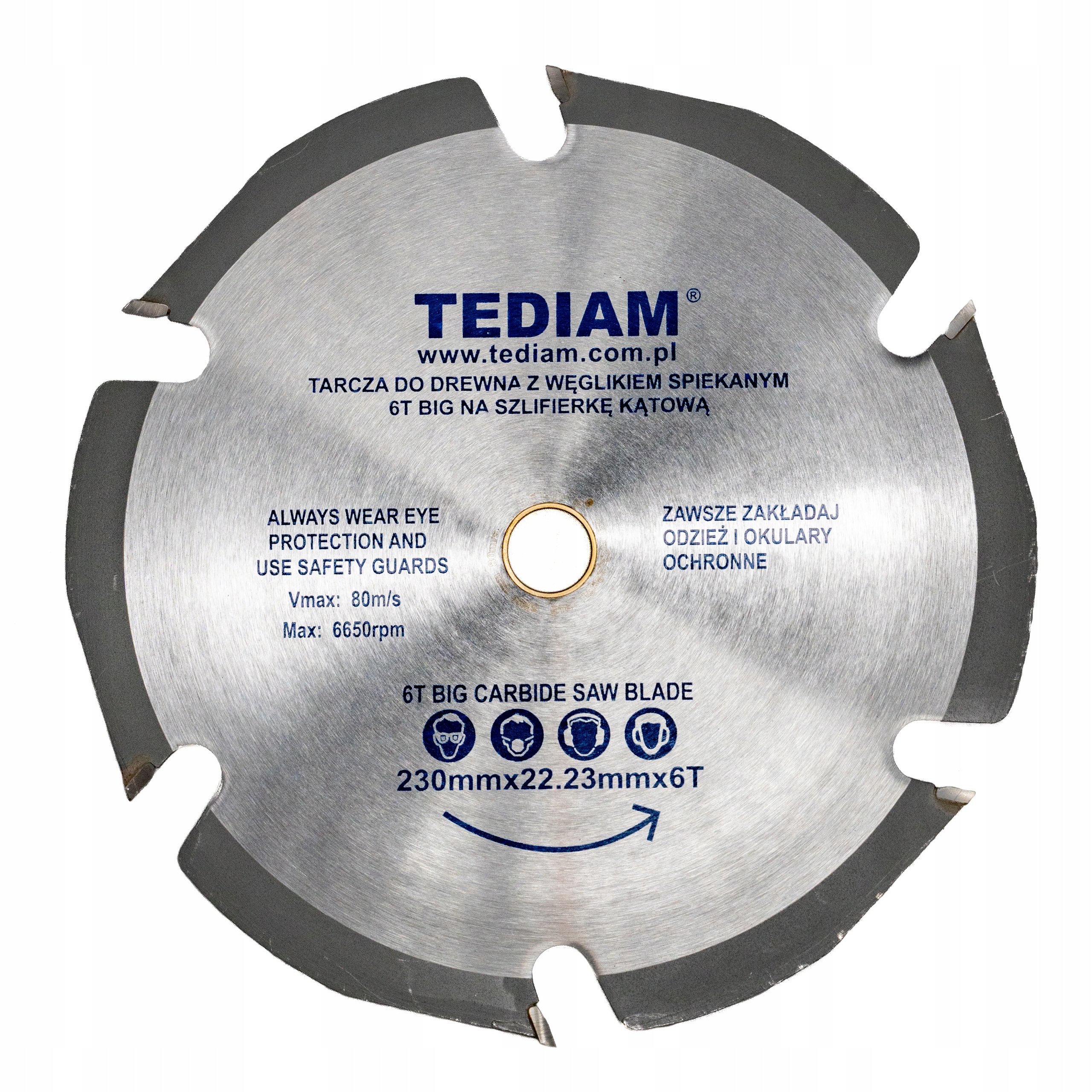 Zgodnie z normą PN-EN 60745-2-3:2011 TARCZ Z WĘGLIKIEM SPIEKANYM oraz TARCZ STALOWYCH do cięcia nie można używać w ręcznych szlifierkach kątowych (bez względu na rozmiar i otwór mocujący). Proszę o tym pamiętać, jeśli jesteście Państwo użytkownikiem końcowym. Ponadto, proszę obowiązkowo zawsze o tym informować (pisemnie) dalszych dystrybutorów i klientów ostatecznych (przy sprzedaży online i bezpośredniej) poprzez odpowiednie wskazanie przeznaczenia tych tarcz z uwzględnieniem bezpieczeństwa ich użytkowania. Informacja ta powinna być dobrze widoczna przy produkcie.